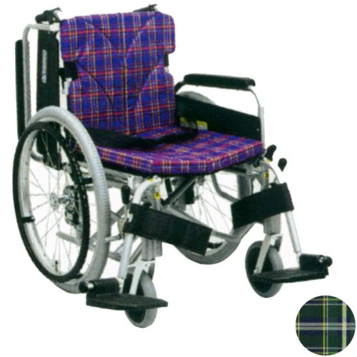 カワムラサイクル KA800シリーズ KA822-40B-H 簡易モジュール車いす 自走式 エレベーティング機能なし 緑チェック 座幅40cm 前座高45.5cm