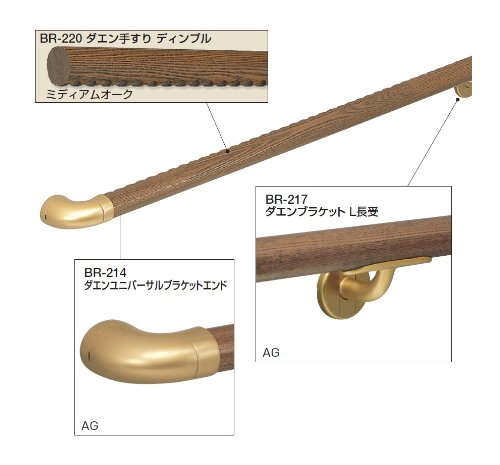 シロクマ 室内用補助手すりダエン形 BR-214 ダエンユニバーサルブラケットエンド AG