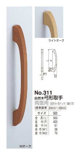 シロクマ ドアー取手 No.311 500mm 弓型取手 ライトオーク