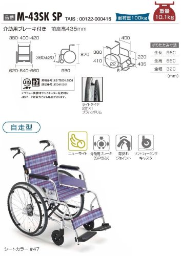 ミキ ニューライト M-43SK SP 超軽量車いす 自走型 ネイビーチェック 座幅40cm 前座高43.5cm