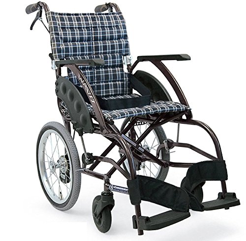 カワムラサイクル WAVIT(ウェイビット)シリーズ WA16-42S 次世代型標準車いす 基本タイプ 介助式 軽量ソフトタイヤ仕様 濃紺チェック 座幅42cm 前座高44.5cm