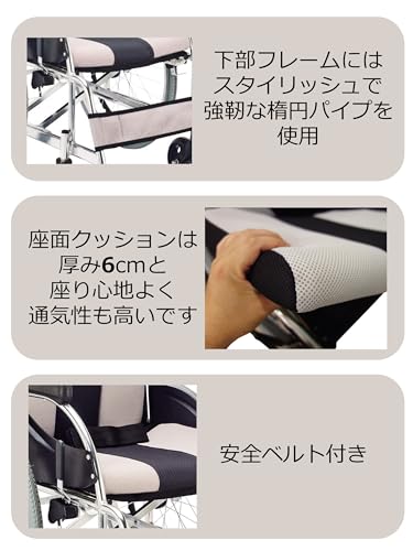 クッションあり 安全ベルトまたは補助ベルトあり 背折れ可能 折りたたみ可能 介助ブレーキ(ハンドブレーキ)あり |