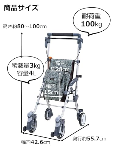マキテック キャリースルーンN CS-10FB コンパクトタイプ シルバーカー フラワーブラウン 座幅22.8cm 前座高44cm