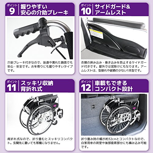 ノーパンクおよび空気管理不要タイヤ仕様 背折れ可能 折りたたみ可能 介助ブレーキ(ハンドブレーキ)あり |