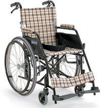 カワムラサイクル KLシリーズ KL22-40B 軽量車いす 介助用ブレーキ付属 濃紺チェック 座幅40cm 前座高44cm
