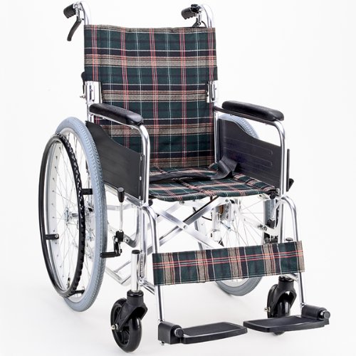 マキテック セレクトシリーズ KS50-4243GC 背折れ&介助ブレーキ付き自走式車いす グリーンチェック 座幅42cm 前座高43cm