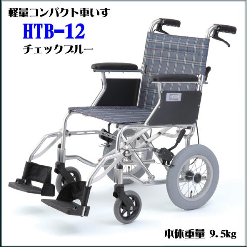 美和商事 ミニポン HTB-12-CB 介助式車いす 標準ブレーキ仕様 チェックブルー 座幅40cm 前座高44.5cm