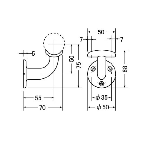 シロクマ ブラケット BR-100 直径35mm向け A形ブラケットL受 シルバー