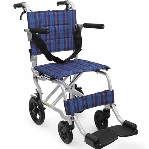カワムラサイクル 旅ぐるまシリーズ KA4-N 外出向け簡易車いす 紺チェック 座幅35cm 前座高43cm