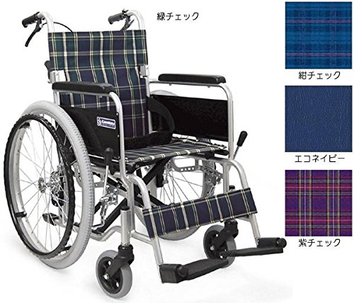 カワムラサイクル KA102・202シリーズ KA102SB-40 標準車いす 介助用ブレーキあり ソフトタイヤ(ノーパンクタイヤ)仕様 背折れ機能あり 紫チェック 座幅40cm 前座高43cm