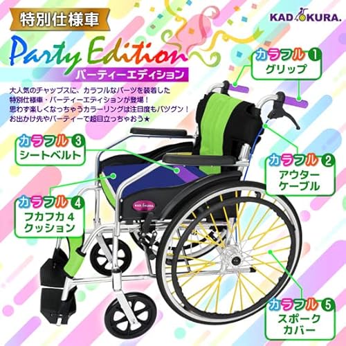 エーアンドエー カドクラ A101-ABPTY 自走式車椅子 パーティエディション オーシャンブルー 座幅43cm 前座高47cm