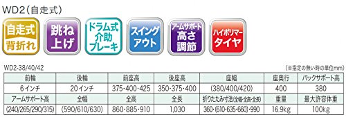 ピジョンタヒラ ウィングアップシリーズ WD2-40 モジュールタイプ車いす 座幅40cm 前座高37.5/40/42.5cm