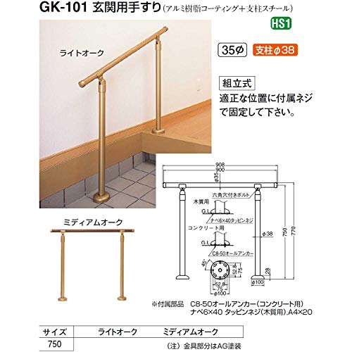 シロクマ 室内用玄関手すり GK-101 直径35mm 玄関用手すり 手すり/アルミ樹脂コーティング 支柱/スチール ライトオーク