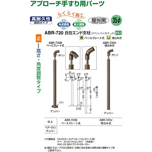 シロクマ アプローチ手すり用パーツ ABR-720B 直径35mm向け 自在エンド支柱 ベースプレート式 ヘアーライン
