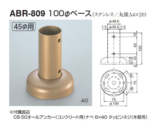 シロクマ アプローチ手すり用パーツ ABR-809 直径45mm 直径100mmベース AG