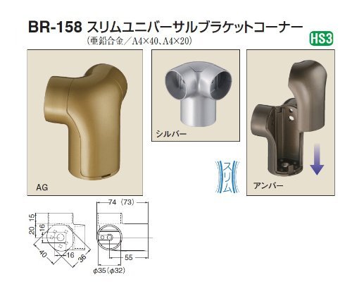 シロクマ ブラケット BR-158 直径35mm向け スリムユニバーサルブラケットコーナー AG