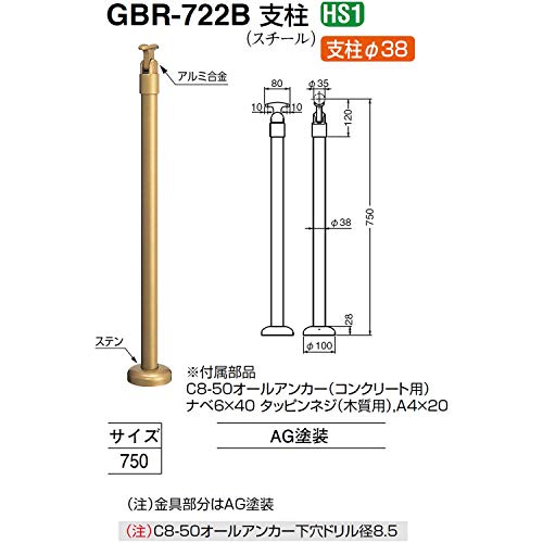 シロクマ 室内用玄関手すり GBR-722B 750mm 直径35mm向け 支柱 受タイプ AG塗装