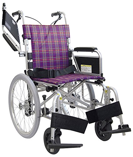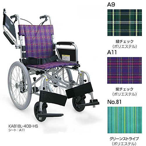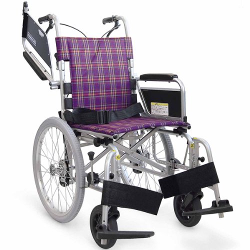 カワムラサイクル KA800Lシリーズ KA818L-42B-HS 軽量簡易モジュール車いす ソフトタイヤ・ハンドブレーキ仕様 紫チェック 座幅42cm 前座高45.5cm